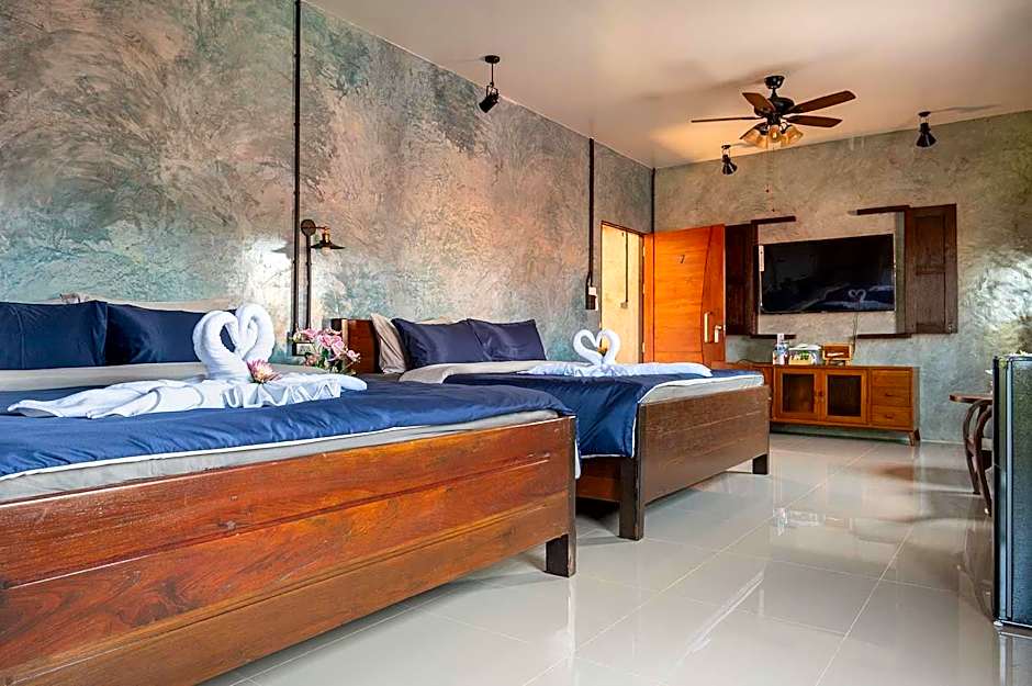 The family room offers air conditioning, a private entrance, a terrace with garden views as well as a private bathroom featuring a shower. The unit offers 2 beds.